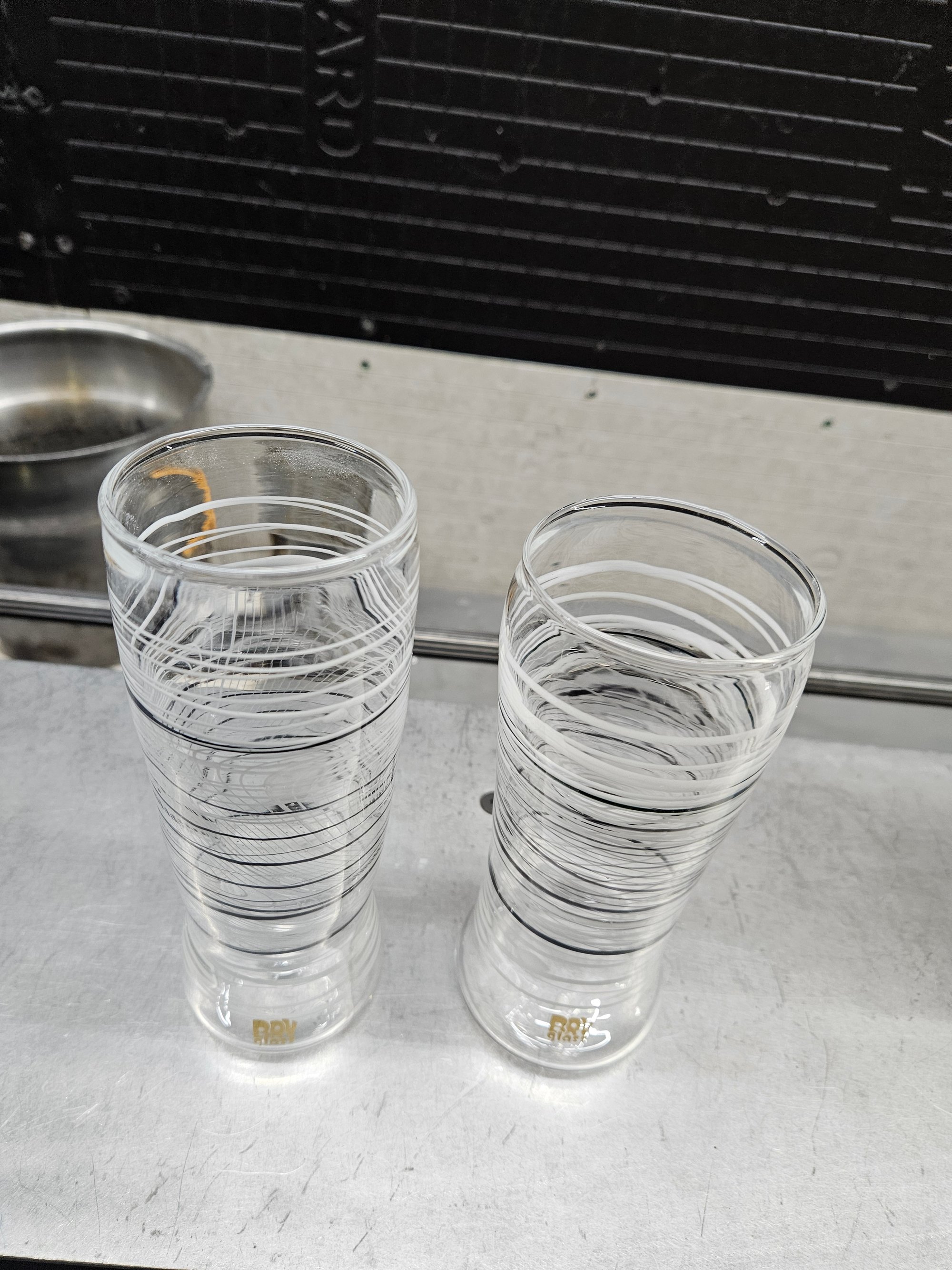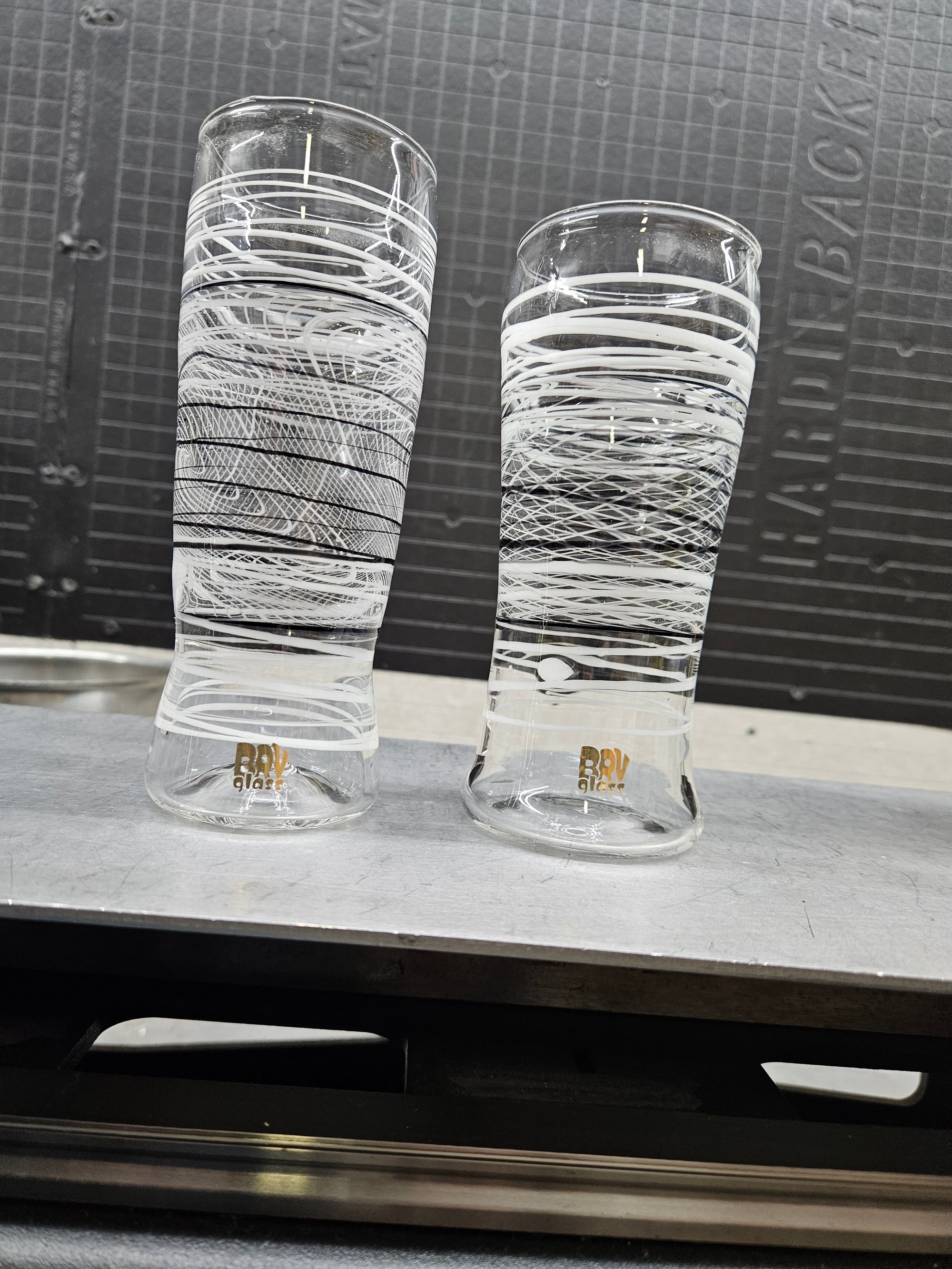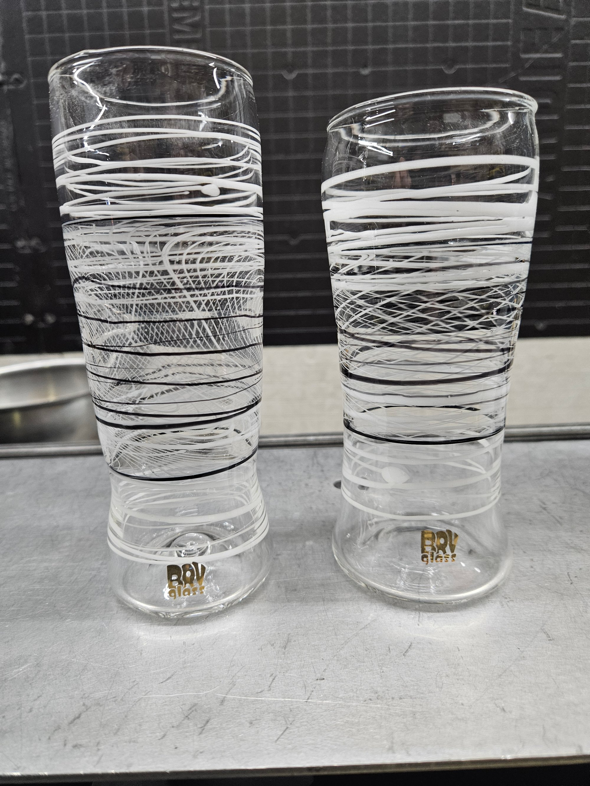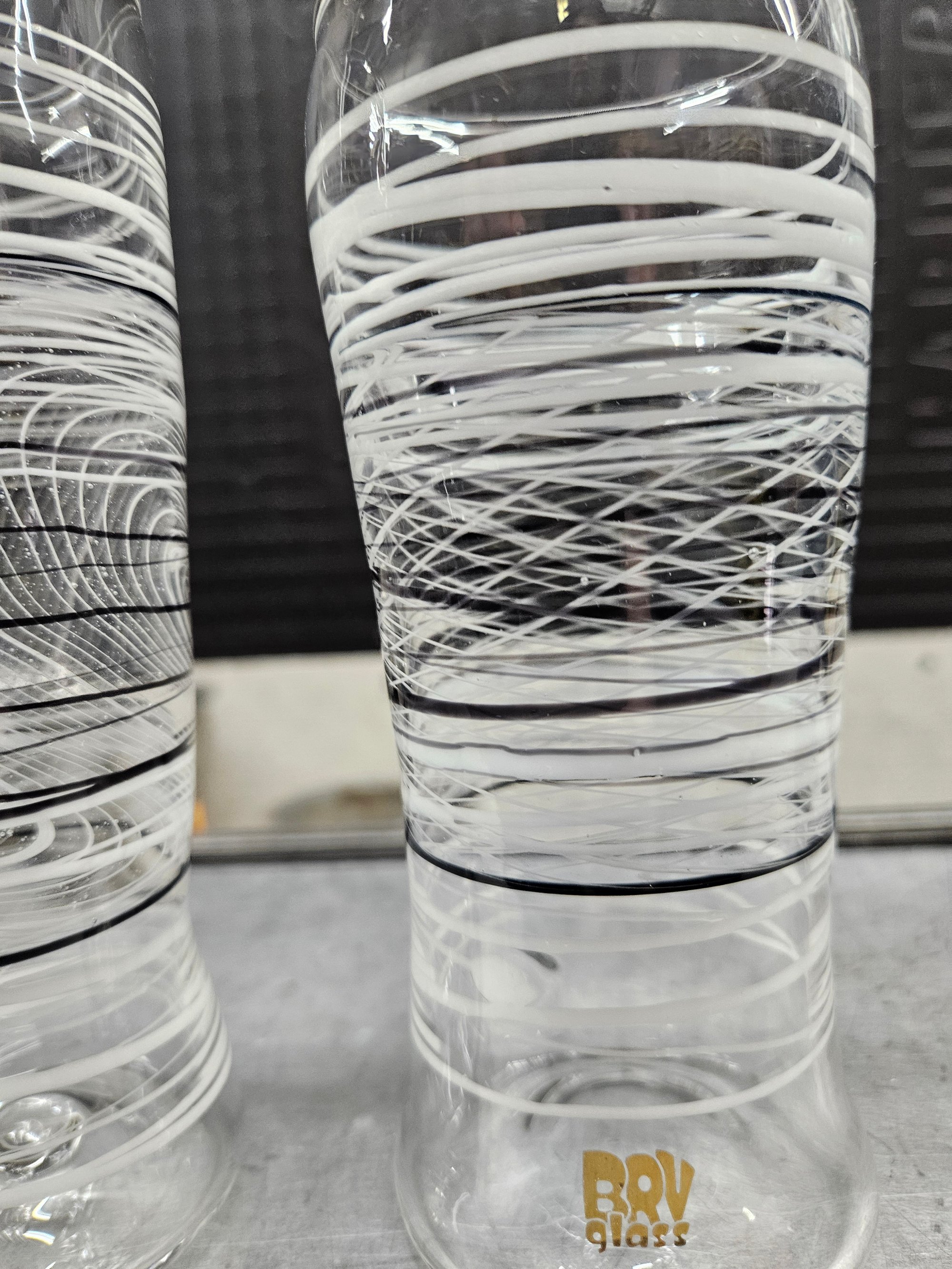 This is a Pair of Collaborative Borosilicate Glass cups made with custom @CristoBreaksGlass pattern sections that are